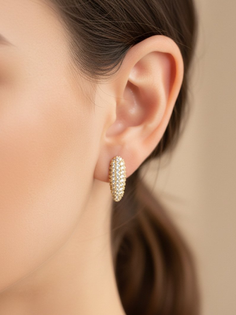 Clássico e sofisticado, o brinco de argola folheado em ouro é cravejado com delicadas zircônias que proporcionam um brilho sutil e elegante. Uma peça versátil, perfeita para o dia a dia ou para compor produções mais refinadas.