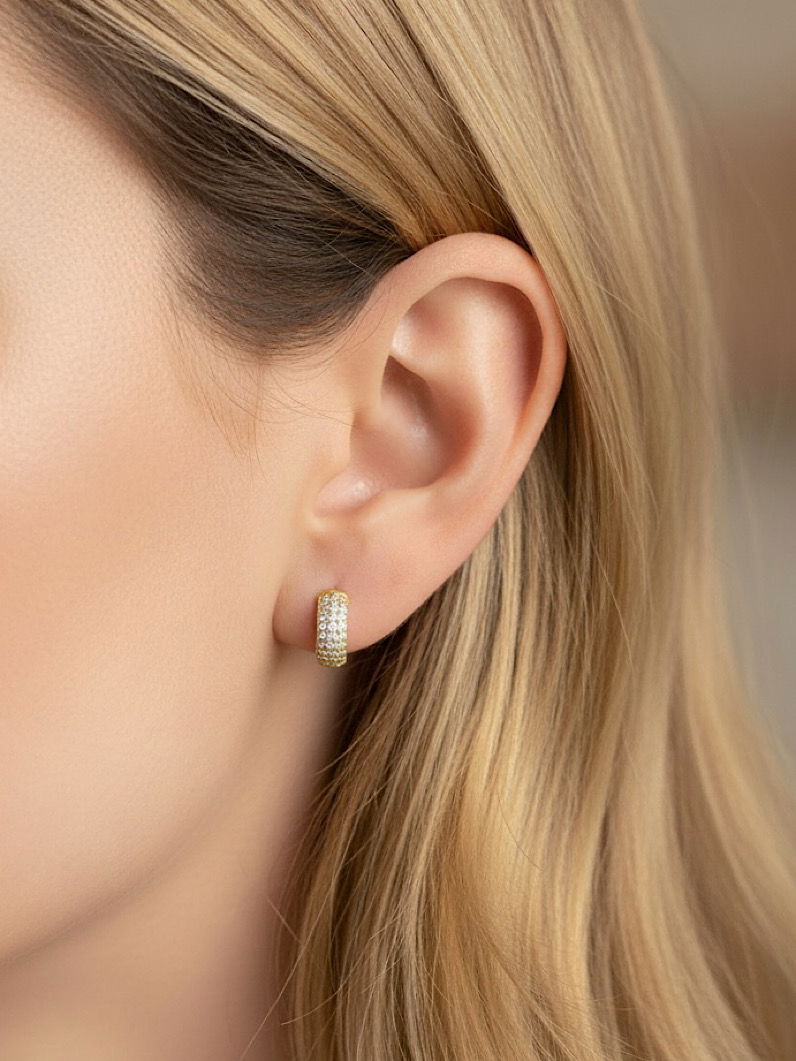 O brinco de argola dourado com zircônias é aquele acessório curinga que traz brilho e elegância em qualquer ocasião. Seu design delicado e acabamento cravejado refletem, realçando o visual com sofisticação e leveza.