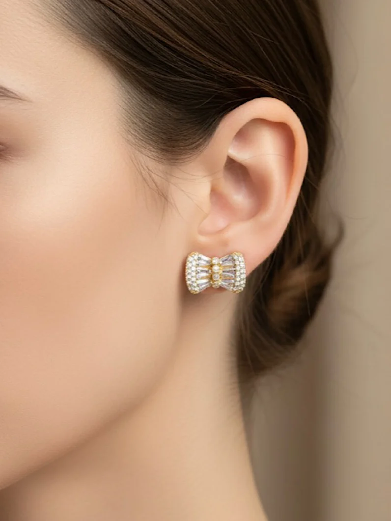 Delicado e cheio de charme, esse brinco em formato de laço é folheado em ouro e cravejado com micro zircônias que garantem um brilho encantador. Uma peça romântica e elegante, perfeita para complementar seus looks com um toque de sofisticação