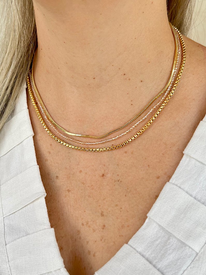 O colar Dani é uma peça sofisticada e elegante, perfeita para quem busca acessórios que unam brilho e estilo. Com três voltas de corrente veneziana e cristais, ele já vem em um mix pronto, dispensando a necessidade de outros colares e garantindo praticidade e charme em uma única peça.