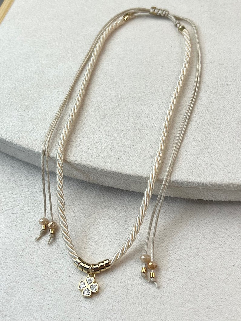 Nosso Colar Ajustável Teen de Trevo Micro cravejado combina charme e estilo para meninas que amam acessórios fofos e modernos. Com um pingente de anjo dourado delicadamente micro cravejado colorido, este colar traz um toque de brilho sutil e sofisticado ao visual. O cordão bege ajustável garante praticidade e caimento perfeito, adaptando-se ao pescoço em diferentes looks e idades.