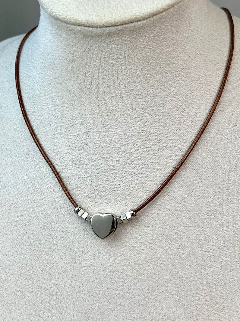 O Colar Choker Miriam Marrom é uma peça cheia de charme e personalidade. Confeccionado em fio de seda marrom, ele traz delicadeza e sofisticação, com o pingente de coração como destaque. Versátil e elegante, pode ser usado sozinho como protagonista ou combinado com outros colares em mixes modernos. Um acessório curinga que valoriza qualquer produção.