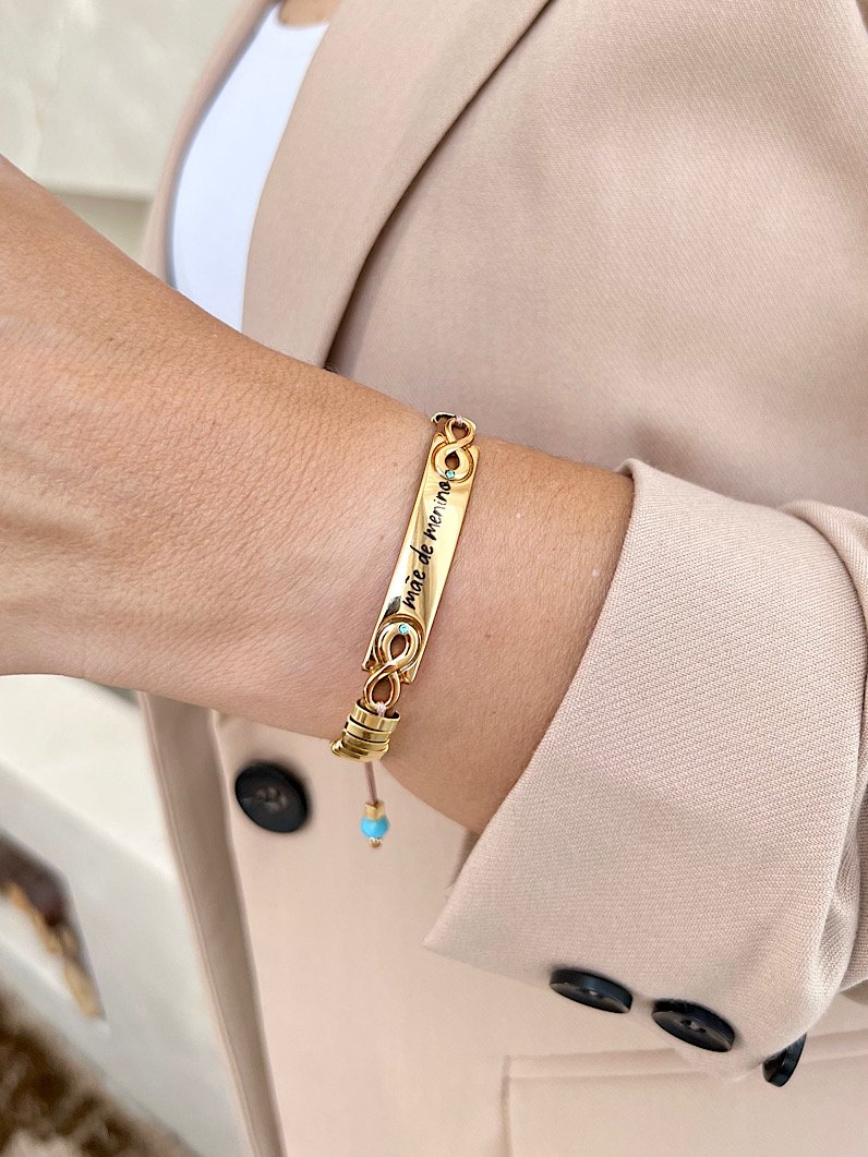 A Pulseira Ajustável Canutilho Mãe de Menino Dourada é delicada e cheia de significado. Composta por canutilhos dourados que criam um visual moderno e elegante, traz um charme especial com o escrita Mãe de menino, perfeito para eternizar esse laço único.
