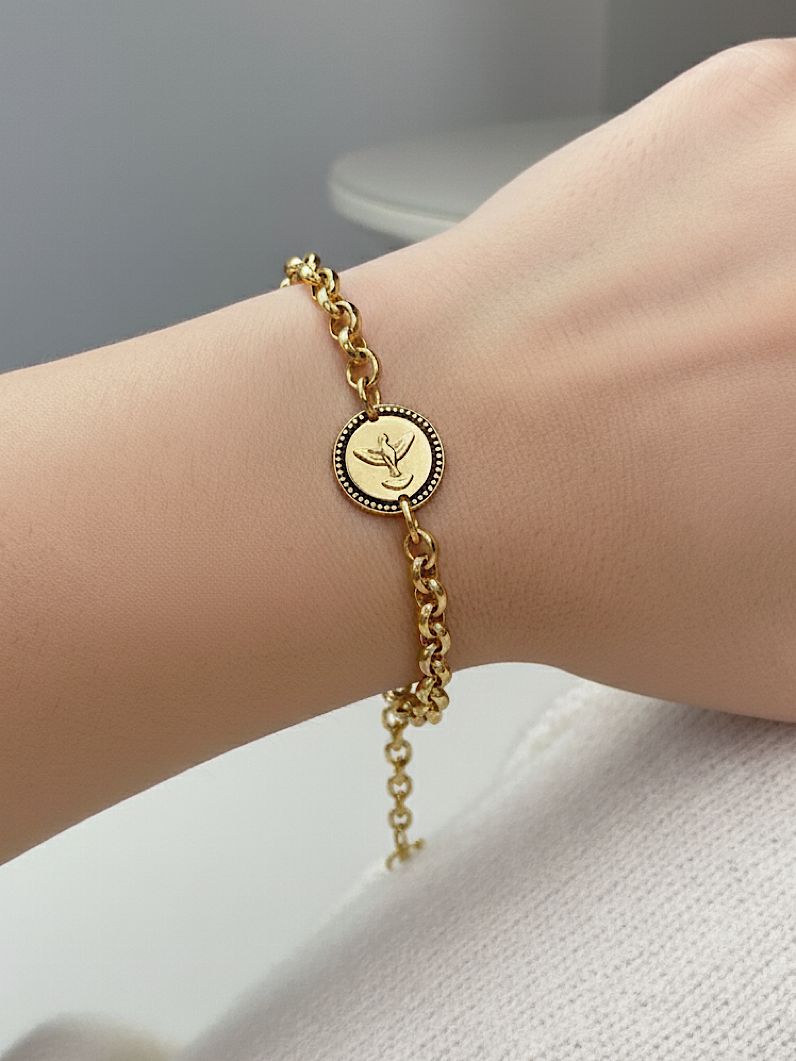 A Pulseira Iara Elo Português Espirito Santo une proteção, elegância e estilo em um único acessório. Composta por elos português e o símbolo do Espirito Santo, traz boas energias e sofisticação ao seu look. Versátil e cheia de charme, pode ser usada sozinha ou combinada com outras pulseiras, adaptando-se perfeitamente ao pulso e criando composições modernas e cheias de personalidade.