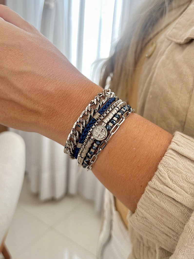 A Pulseira Imã Bruna São Bento Marinho é uma peça cheia de significado e elegância. Seu fecho de imã oferece praticidade, enquanto a medalha de São Bento, símbolo de proteção e fé, confere um toque especial de espiritualidade. A cor marinho adiciona sofisticação e versatilidade, tornando a pulseira perfeita para qualquer ocasião, seja para o dia a dia ou para momentos mais especiais. Ideal para quem busca um acessório com um significado, uma escolha perfeita para adicionar proteção e charme ao visual.