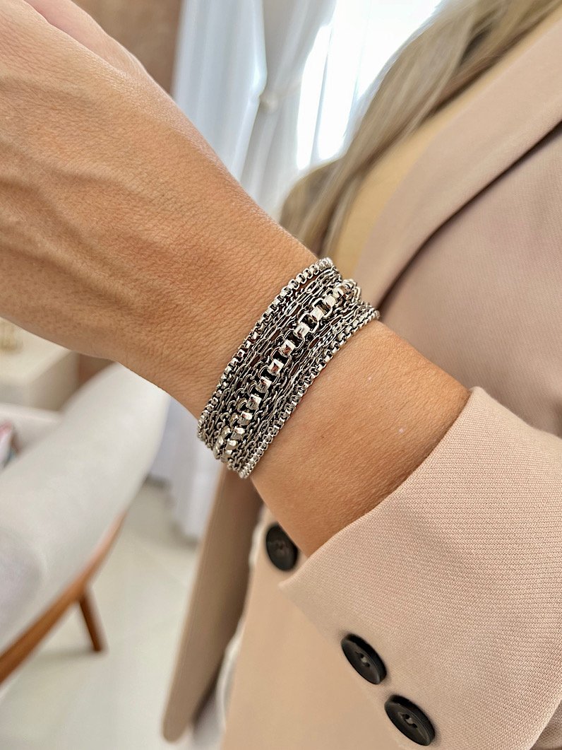 A Pulseira Imã Eloá de Correntes é um acessório elegante e moderno, perfeito para quem busca sofisticação e estilo no dia a dia. Com fecho de imã, ela garante praticidade. Suas correntes, com um design delicado e sofisticado, criam um efeito visual único e encantador. Versátil e atemporal, essa peça é ideal para quem deseja uma pulseira que combina com qualquer ocasião, do look casual ao mais sofisticado.