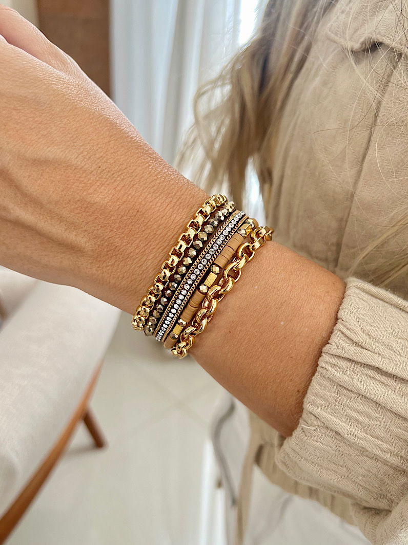 Pulseira Imã Lucy de Strass e Fimos Dourados